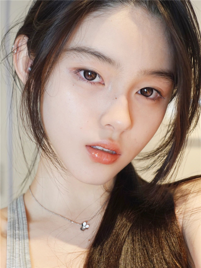 在奶黑色美瞳上打上一點點粉嫩嫩腮紅
